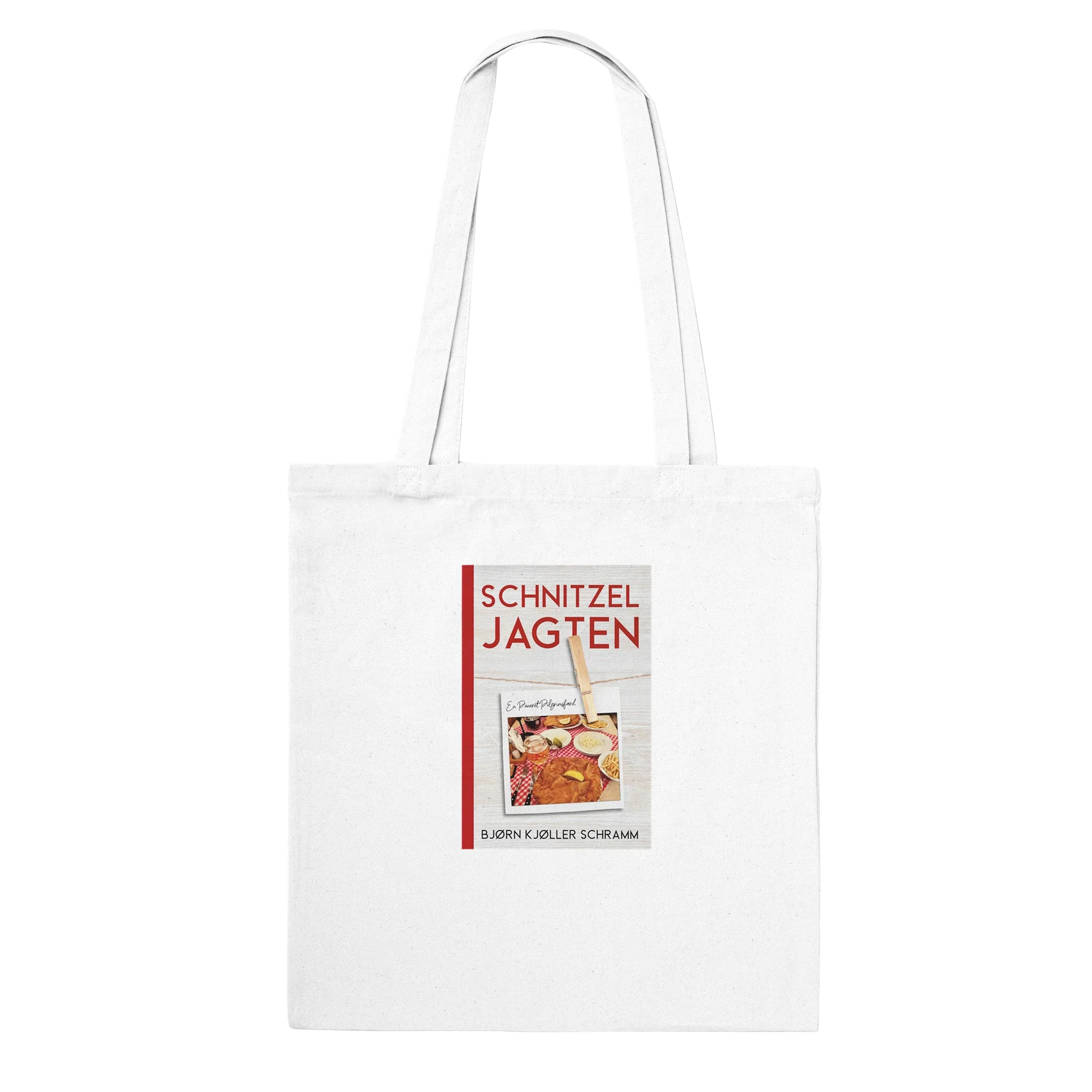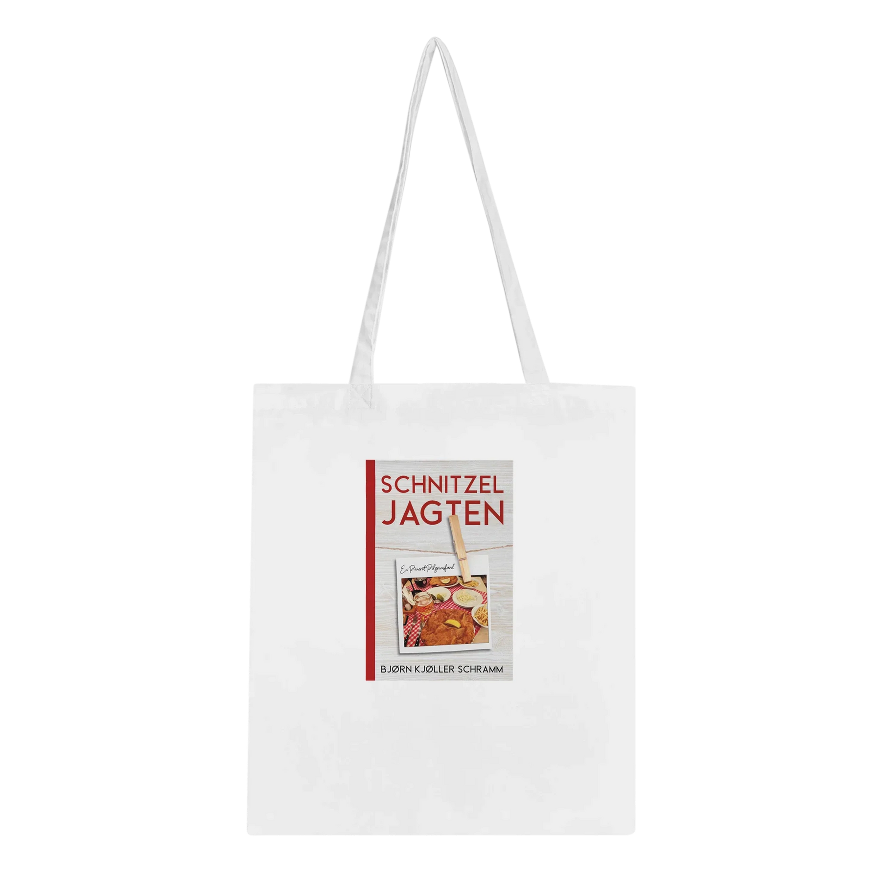 Bær din kærlighed til paneringens ædle kunst med stolthed med denne unikke mulepose, der prydes af forsiden til Bjørn Kjøller Schramms ikoniske bog: "Schnitzel Jagten - En Paneret Pilgrimsfærd".
